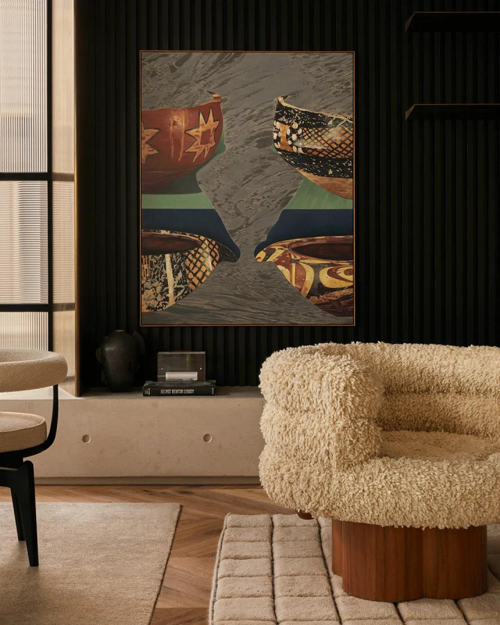 空间的每一处陈设,都是朴素美学的延续。家具、灯具与饰品,无一不散发着自然的气息。树脂的澄澈、毛皮的温暖、古铜的沉淀、大理石的沉静与手工织物的温度,这些源自大地的材质,在空间中相互映衬,编织出丰富的肌理层次。正是这种对天然材质的执着,让居住空间超越了功能性,成为了一件充满艺术张力与个性主张的作品。